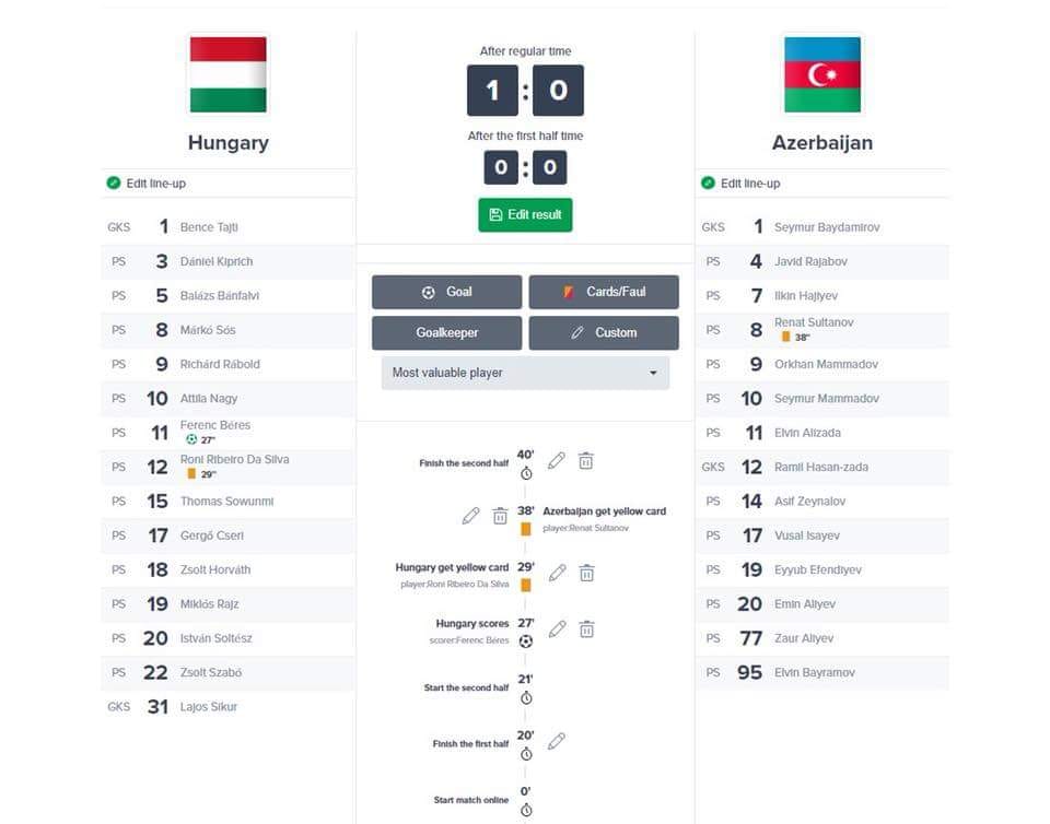 A csapat a Tajti Bence – Sós Márkó, Rajz Miklós, Soltész István, Horváth Zsolt, Béres Ferenc összeállításban kezdett, de szép lassan pályára lépett minden mezőnyjátékosunk. Helyzetek, helyzetecskék akadtak itt is ott is, míg nem a második félidő közepén a 17 éves Soltész István előretörését állították meg szabálytalanul a büntetőterületen belül. A hétméterest Béres Ferenc vállalta, és ha már ott volt magabiztosan értékesítette is. A mérkőzés utolsó perceiben komoly nyomás alá helyezték az azeriek Tajti Bence kapuját, de a védelem egy pillanatra sem hagyott ki, így összességében egy megérdemelt és fontos győzelemmel kezdtük a kontinenstornát!